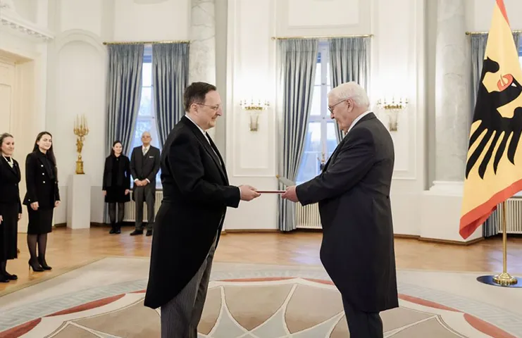 Gökhan Turan, görevine 31 Ocak 2024’te başlamış ve bu önemli görevinin ardından ilk kez resmi bir kabulde bulundu. Kabulün ardından şeref defterini imzalayan Büyükelçi, Cumhurbaşkanı Steinmeier ile hatıra fotoğrafı çektirdi.
