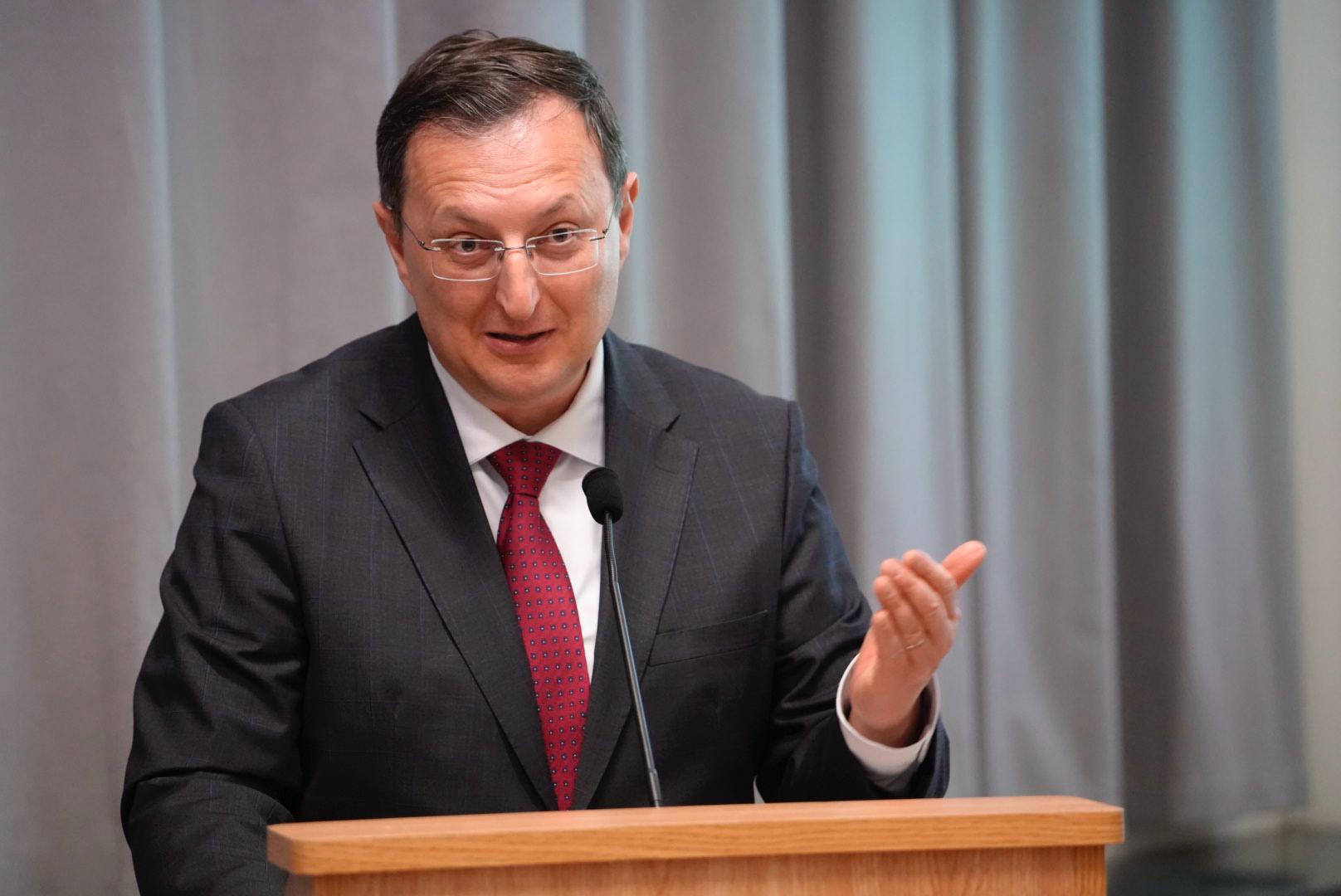 Berlin Büyükelçisi Gökhan Turan, yaptığı kapsamlı konuşmasında Kuzey Ren-Vestfalya’nın, Almanya’daki Türk toplumunun en yoğun yaşadığı eyalet olduğunu belirterek, dört başkonsolosluğun görev yaptığı bölgede bir milyonu aşkın Türk kökenli vatandaşın bulunduğunu kaydetti. Dortmund’un kendisi için özel bir yer tuttuğunu dile getiren Büyükelçi Turan, 1973-1983 yılları arasında bu bölgede yaşamış olduğunu ve ardından 1992-1997 yılları arasında Stuttgart’ta muavin konsolos olarak görev yaptığını hatırlattı.