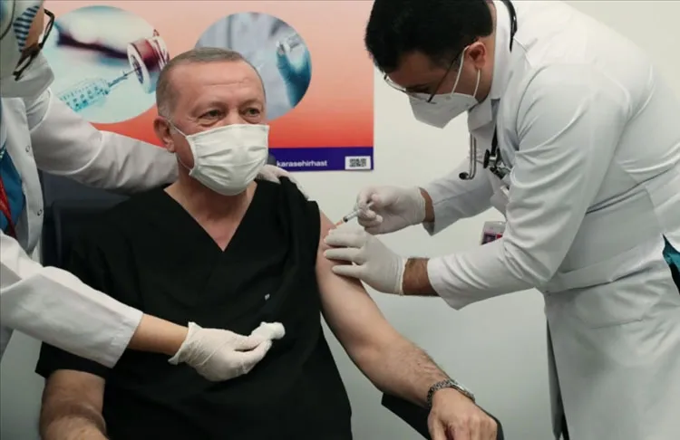 Erdoğan, Ankara Şehir Hastanesinde Kovid-19 aşısı yaptırmasının ardından Twitter hesabından, "Başarıyla devam eden aşı programımız dahilinde şu ana kadar 254 bin sağlık çalışanımız ilk doz aşılarını oldu. Ben de onlara katılarak aşılandım. İnşallah çok kısa süre içinde tüm vatandaşlarımızı aşılamayı hedefliyoruz. Hayırlı uğurlu olsun." paylaşımında bulundu.