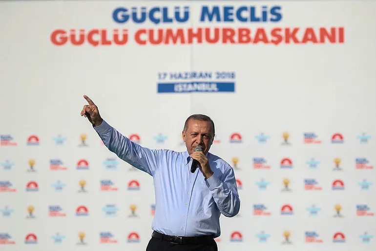 İstanbul mitinginde konuşan Cumhurbaşkanı Erdoğan, "Sen kırık kalplerin devasısın, sen mazlumların umudusun, istikbalimizin kutup yıldızısın İstanbul" ifadeleriyle başladı. Babalar Günü'nü de unutmayan Erdoğan, "Tüm babaların bu güzel gününü tebrik ediyorum. Böyle bir günde bizde en baba mitingimizi İstanbul'da yapıyoruz. Rabbim nazardan saklasın İnşallah. 6 günümüz var. Bu muhteşem meydandan İstanbul'un tüm ilçelerindeki kardeşlerime sevgilerimi yolluyorum" dedi.