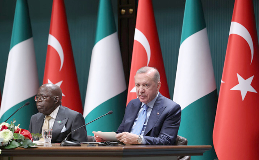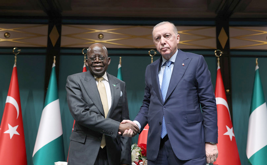 Cumhurbaşkanı Recep Tayyip Erdoğan, Nijerya Cumhurbaşkanı Bola Ahmed Tinubu ile Cumhurbaşkanlığı Külliyesi’nde gerçekleştirdikleri görüşmelerin ardından düzenlenen ortak basın toplantısında, iki ülke arasındaki ticaret hacmini 5 milyar dolara çıkarma hedeflerine bağlılıklarını yinelediklerini açıkladı.