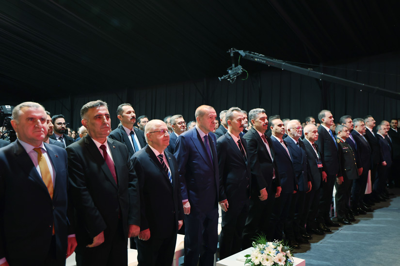 Cumhurbaşkanı Erdoğan, "Artık kendi teknolojisini tasarlayan, kendi yazılımını üreten ve ürettiklerini tüm dünyaya ihraç eden bir Türkiye var. Artık yalnızca kendi ordusunun değil talep edilmesi hâlinde dost, kardeş ve müttefiklerinin de güvenlik ihtiyaçlarını karşılayan bir Türkiye var. Artık 3T modelini yani tespit, teşhis ve taarruz süreçlerini yerli ve millî teknolojisiyle tatbik eden dünyada yıldızı giderek yükselen bir Türkiye var" dedi.