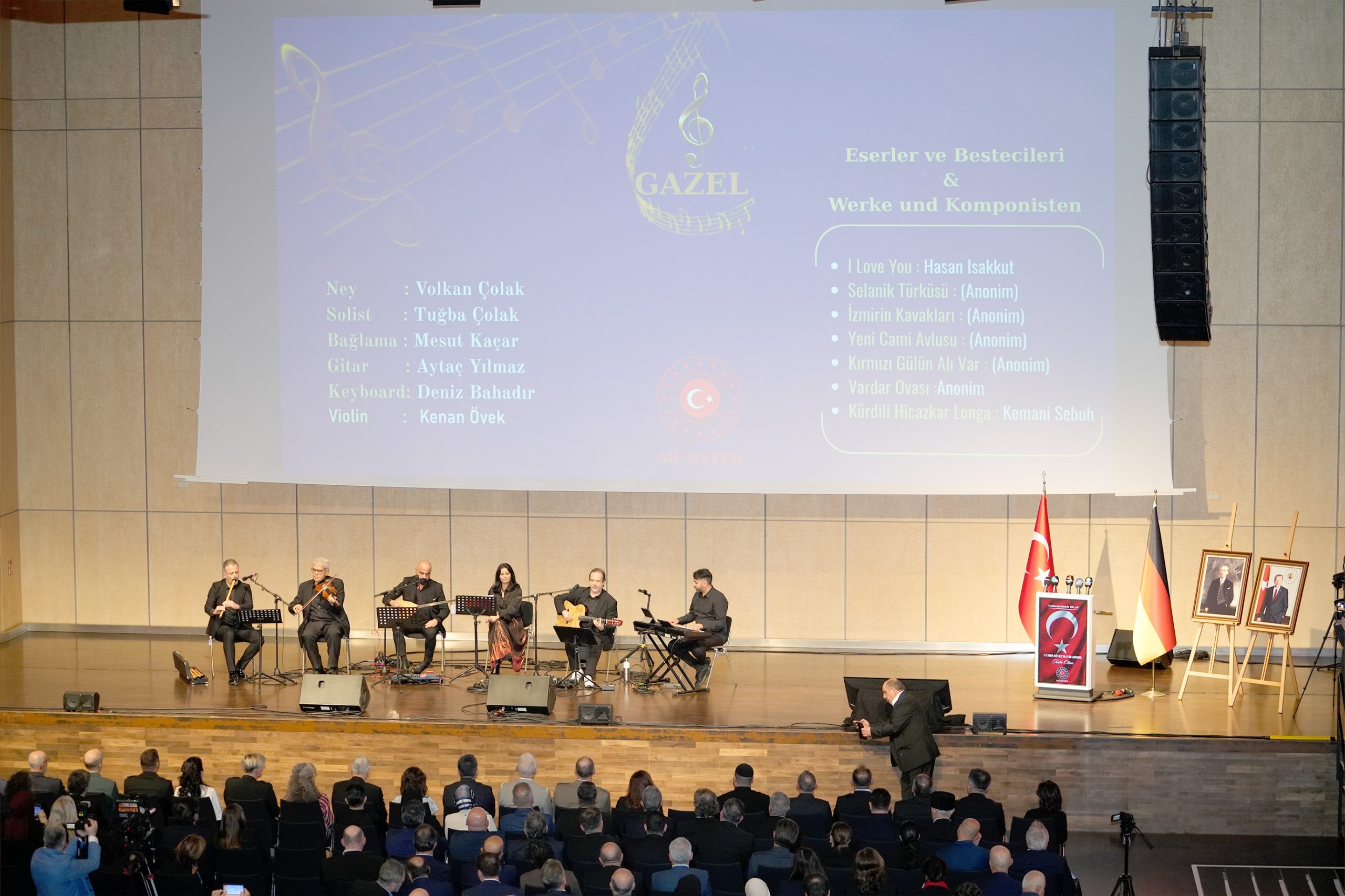 Başkonsolos Arman’ın konuşmasının ardından sahne alan “Gazel” müzik grubu, Türk sanat müziği eserleriyle geceye anlam kattı. Grubun geleneksel ezgilerle modern tınıları harmanlayan performansı davetlilerden büyük beğeni topladı.