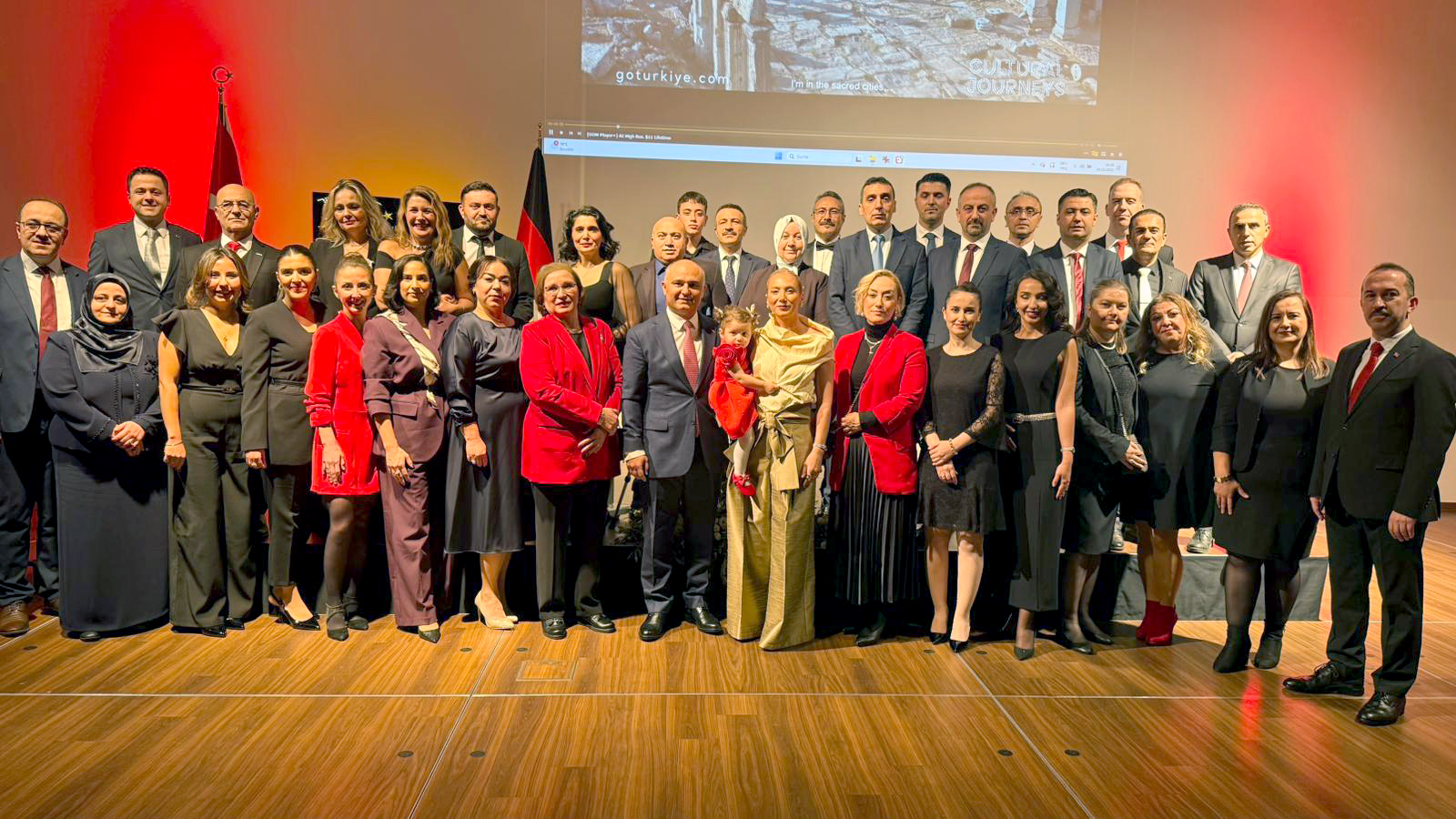 Essen şehrinin en görkemli salonlarından Franz Tagungs- & Stadthotel’de düzenlenen Cumhuriyet Bayramı resepsiyonu, 500’ün üzerinde davetlinin katılımıyla büyük bir coşku içinde gerçekleşti. Türk mutfağından seçkin lezzetlerin ikram edildiği, mini bir konserle renklenen davette konuklar, sıcak ve keyifli bir atmosferde ağırlandı.