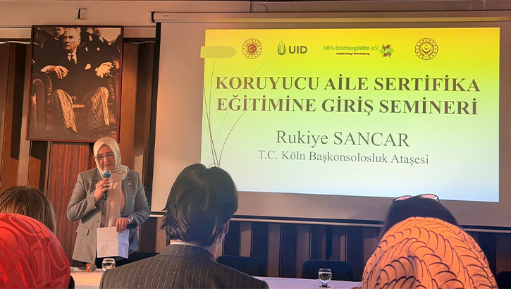 Köln Başkonsolosluk Ataşesi Rukiye Sancar, Koruyucu Aile Eğitimi Semineri’nde koruyucu aile sisteminin çocukların güvenli ve sağlıklı bir ortamda yetişmesi için büyük önemini vurguladı.
