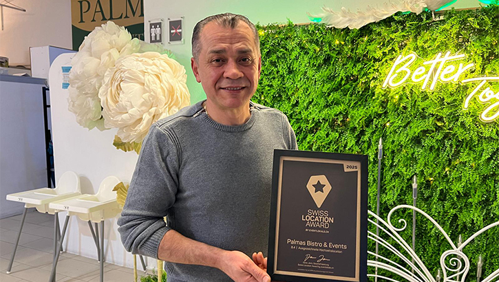 Zürih – İsviçre’de her yıl düzenlenen prestijli Swiss Location Award by Eventlokale ödülleri bu yıl, "En İyi Düğün Lokasyonu" kategorisinde Palmas Bistro ve Event Salonu’na verildi. Zürih yakınlarındaki Aarau kentinin Oberentfelden beldesinde bulunan salon, “Ausgezeichnet Hochzeitslocation” (Seçkin Düğün Lokasyonu) belgesini, organizasyonun genel müdürü Dario Jahn’ın elinden aldı.
