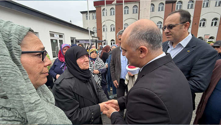 Cenaze merasimi sonrası cami avlusunda Okur’un ailesi taziyeleri kabul etti.