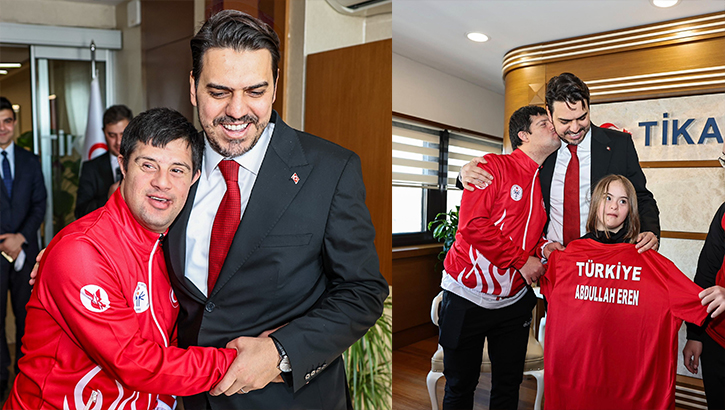 TİKA Başkanı Abdullah Eren, sosyal medya hesabından yaptığı paylaşımda kurumlarında çok özel misafirleri ağırlamaktan büyük mutluluk duyduklarını ifade etti. Eren, “Bugün kurumumuzda çok özel misafirleri ağırlamanın mutluluğunu yaşadık. Türkiye Özel Sporcular Federasyonu’ndaki özel sporcularımızı TİKA’da misafir ettik. Azimleri, başarıları ve ilham veren hikâyeleriyle bizlere büyük bir mutluluk yaşatan sporcularımıza ve başta Federasyon Başkanı Birol Aydın olmak üzere bu kıymetli sporcuları yetiştiren tüm ailelere teşekkür ediyorum.” dedi.