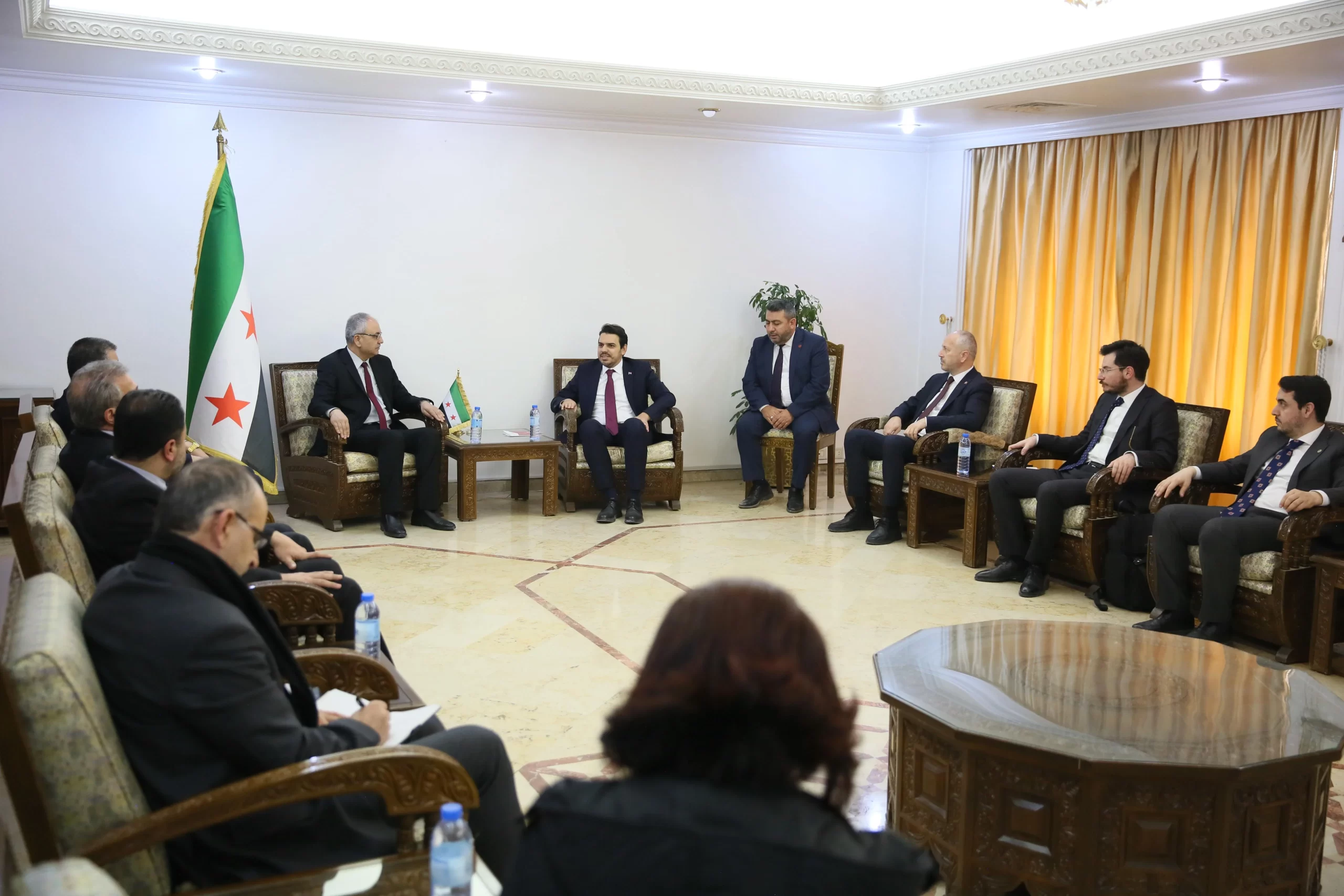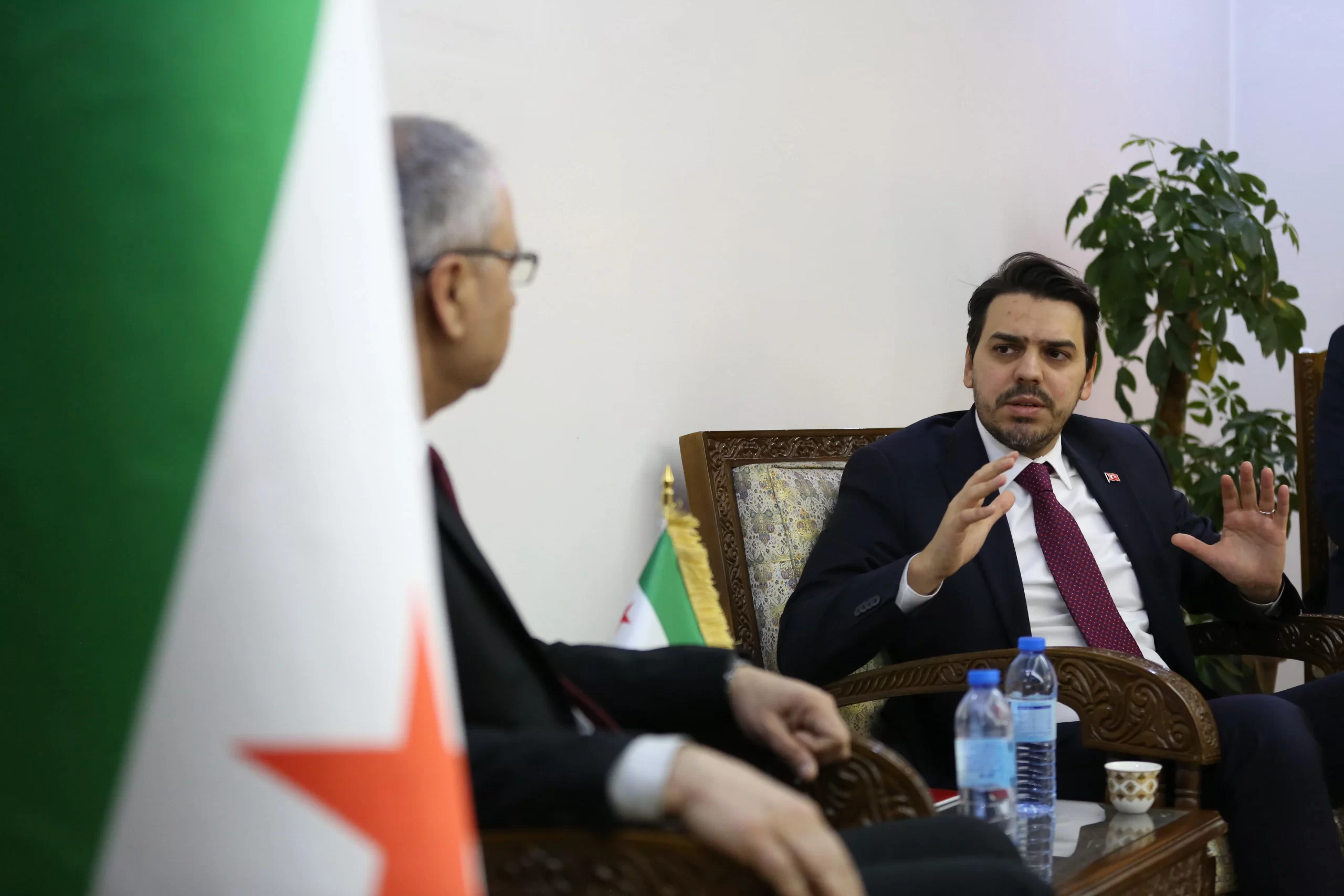 İş birliği imkanlarını değerlendirmek için geldiklerini belirten Eren, “Bizi kabul ettiğiniz ve bize vakit ayırdığınız için teşekkür ederiz. Öncelikle konuşmamın başında sizleri tebrik etmek istiyorum. 14 senelik mücadelenin sonunda rejime karşı Suriye halkı kazandı. Suriye'nin insanları kazandı. Sizler kazandınız. İki aydır meydana gelen bu süreçten dolayı çok mutluyuz. Sizleri tekrardan tebrik ediyoruz. Biz de sizlere iş birliği önerilerimizi teklif etmek için geldik. Şehit olan, hayatını kaybeden tüm Suriyelilere Allah’tan rahmet diliyorum” dedi.