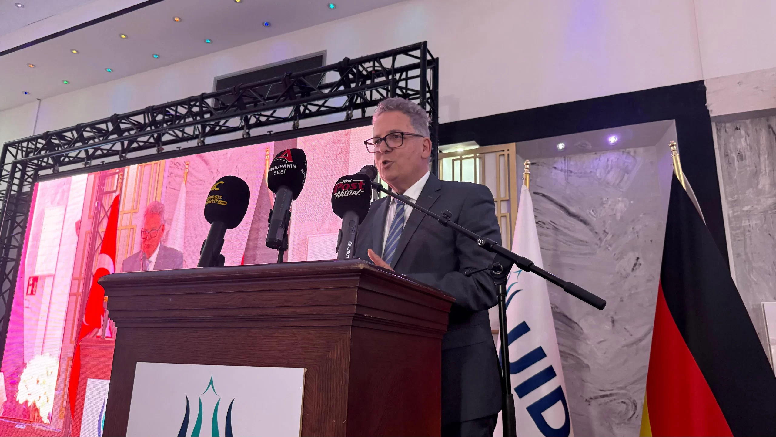Fahri Konsolos Dr. Uwe Merklein, konuşmasında Aachen'den en iyi dileklerini ileterek, burada olmak ve selamlarını sunmanın kendisi için büyük bir onur olduğunu belirtti. Aachen'in ona yeni bir vatan ve birlikte yaşamanın, şefkatin değerini hatırlattığını söyledi. Birlikte durarak, barışı ve birlikte yaşamı iyileştirmenin önemini vurgulayan Merklein, Türk tarafına daha fazla anlayış gösterilmesini temenni etti. Konuşmasını, hepimize barış dolu bir gelecek ve anlam dolu bir akşam dileyerek sonlandırdı.