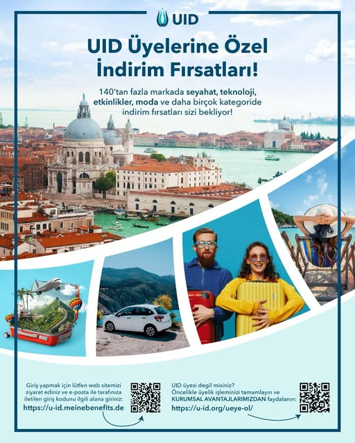 UID üyeleri, sunulan avantajlardan faydalanmak için aşağıdaki bağlantı üzerinden sisteme giriş yapabilir. Giriş sırasında, e-posta yoluyla kendilerine iletilen giriş kodunu ilgili alana girmeleri yeterlidir: https://u-id.meinebenefits.de