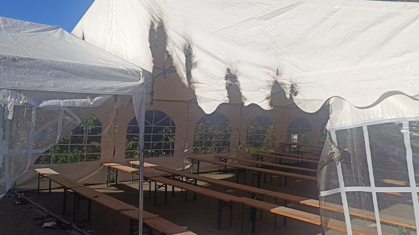 👉 WhatsApp Kanalına KatılEdinilen bilgilere göre, kermes öncesinde cami avlusunda kurulan çadırların bulunduğu alanda gece saatlerinde yangın çıktı. Çıkan yangında tüm çadırlar kullanılamaz hale gelirken, oturma gruplarında da ciddi hasar oluştu.