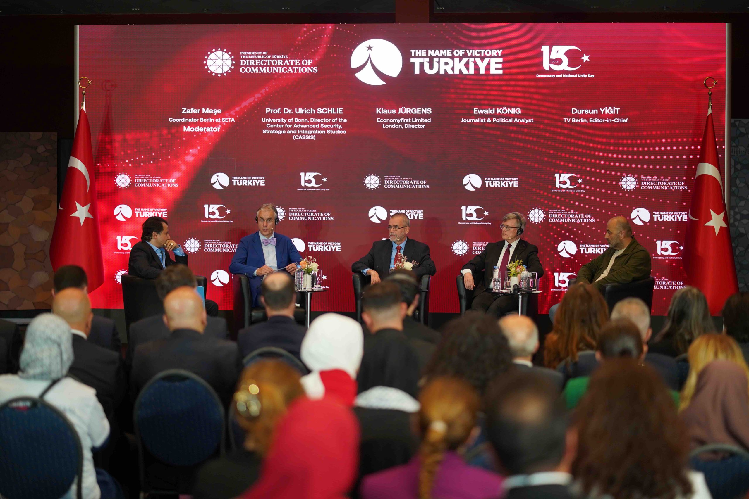 Almanya’nın başkenti Berlin, 15 Temmuz Demokrasi ve Millî Birlik Günü kapsamında düzenlenen anlamlı bir panele ev sahipliği yaptı. İletişim Başkanlığı tarafından organize edilen “Zaferin Adı Türkiye” panel serisinin Berlin ayağı, çok sayıda akademisyen, gazeteci, siyasetçi ve diplomatın katılımıyla gerçekleştirildi.