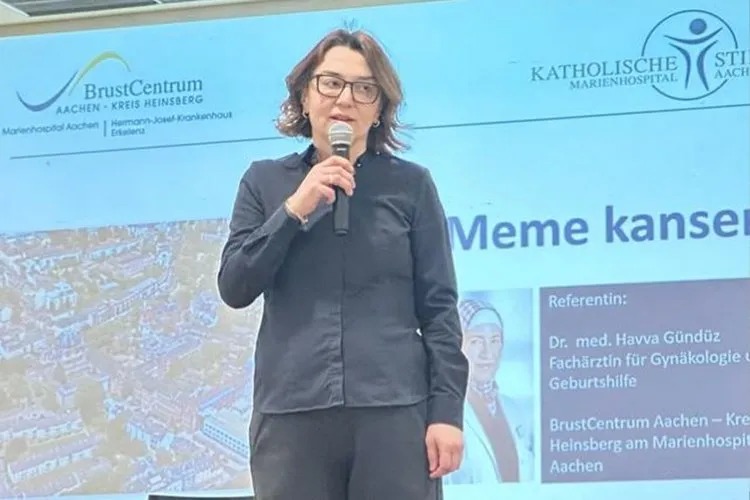 Almanya’nın Aachen kentinde kadınların büyük ilgi gösterdiği “Meme Kanseri, Teşhis, Önlem ve Tedavi” konulu konferansta konuşan Aachen Marienhospital’da çalışan Kadın Hastalıkları ve Doğum Uzmanı Dr. Havva Gündüz, erken tanının bu hastalıktan kurtulmakta çok büyük bir rol oynadığını söyledi.