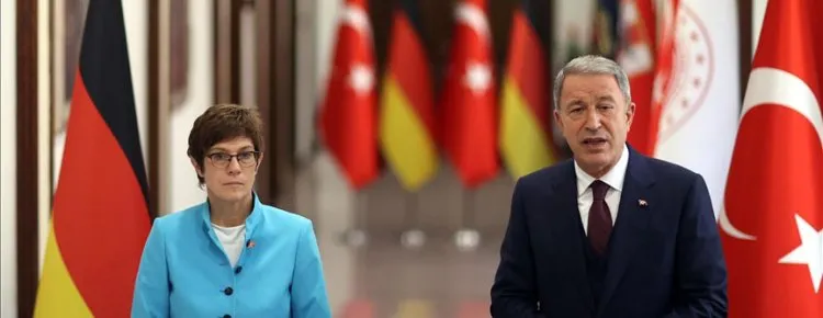 Akar'ın Milli Savunma Bakanlığında askeri törenle karşıladığı Karrenbauer, tören kıtasını selamlamasının ardından Şeref Defteri'ni imzaladı. İki bakan baş başa gerçekleştirdikleri görüşmenin ardından açıklamalarda bulundu.