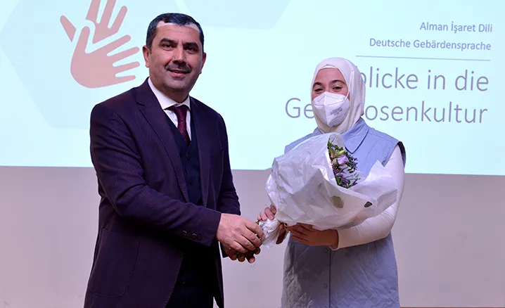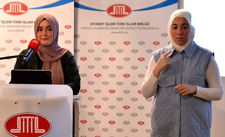 DİTİB Eğitim Merkezi Sorumlusu Buket Kara’nın sunumu ile gerçekleşen tören DİTİB Genel Başkan Yardımcısı Ahmet Dilek’in Kur’an-ı Kerim tilavetiyle başladı. Kara, “İşitme engelliler ve duyma güçlüğü çekenler için, iletişimi sağlamak adına ve herhangi bir işitme problemi olmayan kişiler için de sosyal hayatta işaret dili iletişim aracı olarak faydalı olmaktadır” dedi.