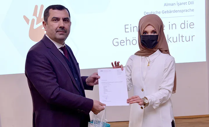 Sertifika törenine, DİTİB Genel Başkanı Kazım Türkmen, DİTİB Genel Başkan Yardımcısı Ahmet Dilek, Akademi Müdiresi Şeyda Can, işaret dili eğitmeni Hüsnüşan Suiçmez ve işaret dili kursiyerleri katıldı.