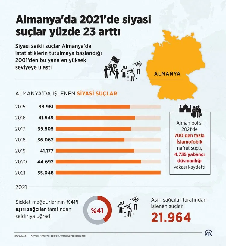Almanya’da 2021’de siyasi suçlar yüzde 23 arttı