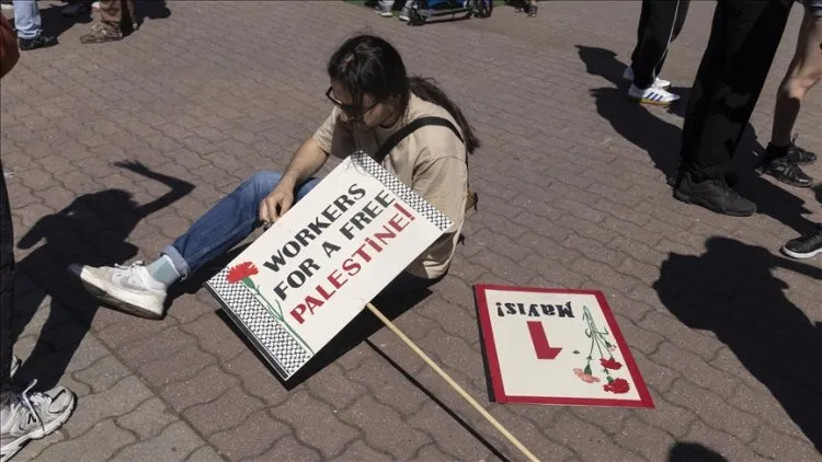 Almanya'nın başkenti Berlin'de düzenlenen "1 Mayıs Emek ve Dayanışma Günü" yürüyüşünde Filistin'e destek verildi.