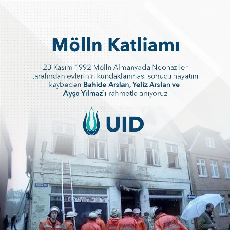 Uluslararası Demokratlar Birliği (UID) Genel Başkanı Köksal Kuş, Mölln katliamının 30. yıl dönümü dolayısıyla yayımladığı mesajda, "bu alçak saldırının Almanya’nın utanç günlerinden biri olarak tarihe geçtiğini" belirtti.