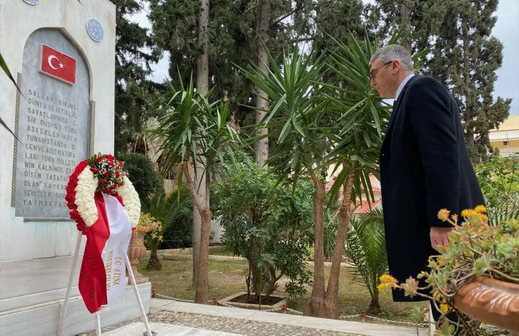 Türkiye'nin Atina Büyükelçisi Burak Özügergin, Atina-Pire Başkonsolosu Mustafa Somuncu, askeri ataşeler ve diplomatik misyon üyelerinin katıldığı tören, şehitlik anıtı önündeki saygı duruşu ile başladı.