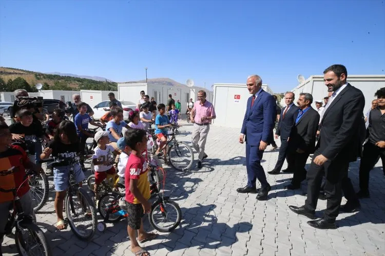 Çocuklarla yakından ilgilenen ve konteynerde yaşayan afetzedelerle görüşen Bakan Ersoy, depremzedelerin sorun ve taleplerini dinledi.