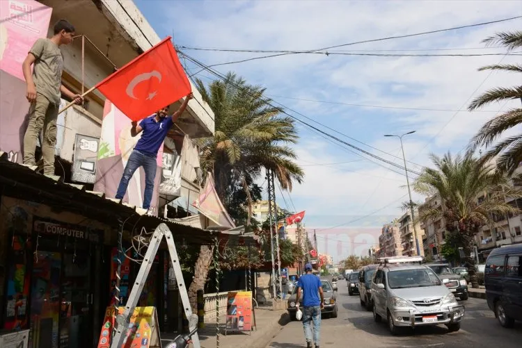 Trablusşam kentinin Beddavi bölgesinde caddelere ve evlerin çatısına Türk bayrakları asan gençler, Cumhurbaşkanı Recep Tayyip Erdoğan ve Barış Pınarı Harekatı'nı destekleyen sloganlar attı.