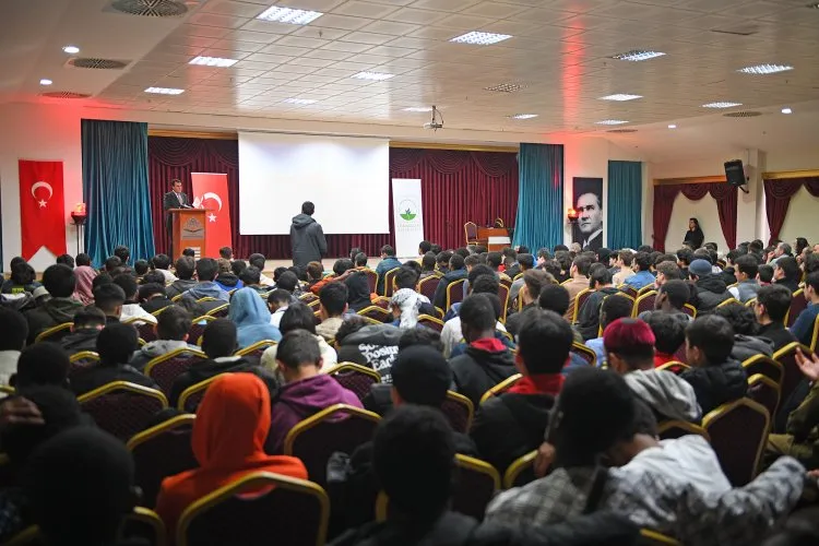 Büyük Destan Çanakkale Zaferi’nin 108. yılı dolayısıyla düzenlenen söyleşide yerli ve yabancı öğrenciler, tarihin akışını değiştiren destansı mücadeleyi detaylarıyla dinleme imkanı buldu. Doç. Dr. Hacer Karabağ Arslan’ın konuşmacı olarak katıldığı söyleşide Osmangazi Belediye Başkanı Mustafa Dündar da öğrencilere 108 yıl önceki kutlu zaferin öneminden bahsetti.