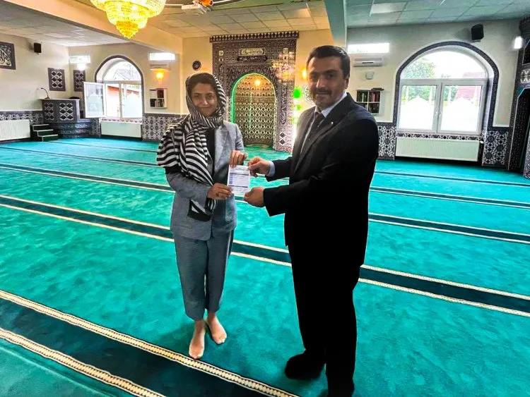 Hannover Başkonsolosu Gül Özge Kaya’nın kurban vekaletini DİTİB adına kabul eden Hannover DİTİB Dini Danışma Kurulu Başkan Vekili Kadir Kızıltepe, Başkonsolos Kaya’ya teşekkür ederek bağış makbuzlarını takdim etti.