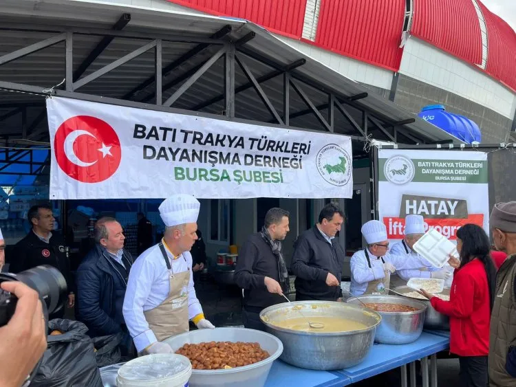 Batı Trakya Türkleri Dayanışma Derneği (BTTDD) Bursa Şubesi her yıl geleneksel olarak gerçekleştirdiği iftar programını bu yıl 6 Şubat tarihinde asrın felaketi olarak nitelendirilen depremden en büyük hasar gören şehirlerden biri olan Hatay'da gerçekleştirdi.