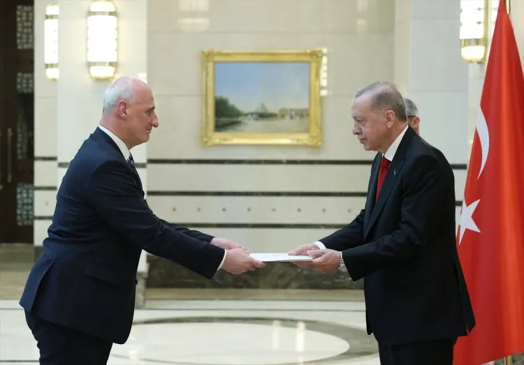 Bazı büyükelçilik mensuplarını takdim eden büyükelçi, Cumhurbaşkanı Erdoğan ile hatıra fotoğrafı çektirdi.