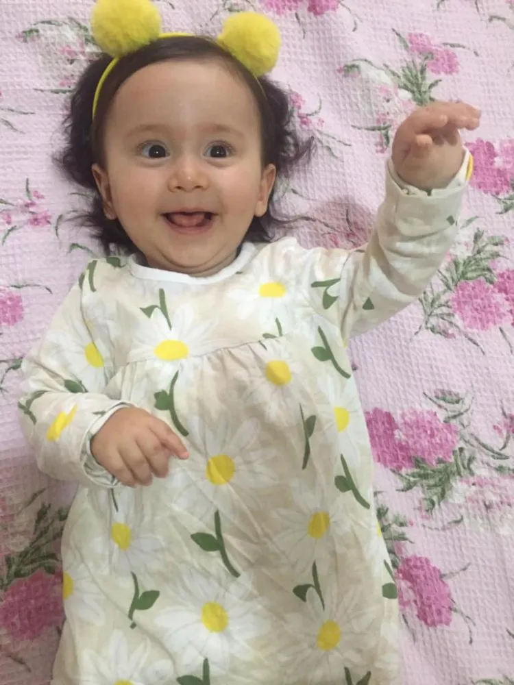 Kızım Alara bu hastalık sebebiyle dönemiyor, emekleyemiyor, desteksiz oturamıyor ve yürüyemiyor. O bizim ilk ve tek çocuğumuz. Alara 10.06.2019’da doğdu. İlk kez 4 aylıkken bacak hareketlerinin yavaşlaması ile hastalığı fark ettik fakat şimdiye kadar ailelerimizde böyle bir hastalık olmadığı için ne olduğunu anlayamadık. Fakat hareketleri giderek yavaşladığı gibi diğer gelişim özelliklerinin hareketlerini de yerine getiremedi. Hemen doktora gittik ve testler yapıldı, 10 aylıkken kesin olarak kızımızın SMA Tip1 Hastası olduğunu öğrendik. Şuan 20 aylık oldu. Türkiye’de SGK kapsamında aldığımız Spinraza ilacı var. Bu tedavi beldeki omurilikten sıvı alınıp ilaçla karıştırılarak tekrardan aynı yerden enjekte edilerek uygulanıyor. Bu ilacım 4 dozunu kesin olarak alıyoruz, sonrasında solunum makinesi ve fiziksel hareketleri açısından kendi belirledikleri birtakım kriterleri yerine getirmesi gerekiyor.