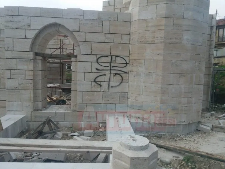 İnşası devam eden tarihi caminin duvarlarına "4S" olarak da bilinen "Sadece Birleşme Sırpları Korur" anlamını taşıyan sembolün ve ayrıca Nazilerin sembolü olan gamalı haçın çizilmesi tepki çekti.