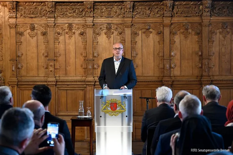 Müslümanların geçmiş bayramlarını kutlayarak konuşmasına başlayan Bremen Eyalet Başbakanı ve Büyükşehir Belediye Başkanı Dr. Andreas Bovenschulte, bayramlaşma geleneği Dr. Scherf tarafından başlatıldığını ifade etti.