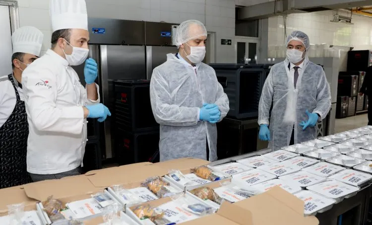 Büyükşehir Belediye Başkanı Alinur Aktaş, BUSKİ Yemekhanesinin alt katındaki BURFAŞ mutfağında özenle hazırlanan iftar yemeklerinin evlere dağıtım öncesi yapılan son hazırları yerinde inceledi. BURFAŞ Genel Müdürü Furkan Banaz’dan çalışmalar hakkında bilgi alan Başkan Aktaş, dağıtıma çıkacak personeli de özellikle uyardı.