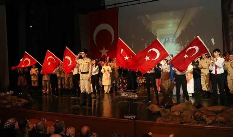 Meydanı’nda düzenlediği alanda cephede yaşananların sergilendiği tiyatral gösteri, vatandaşlar tarafından büyük bir gururla izledi.