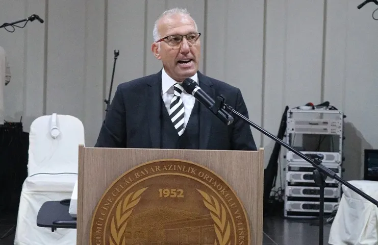 Celal Bayar Okul Müdürü Tunalp Mehmet konuşmasında, “Değerli velilerimiz emanet olarak aldığımız değerli evlatlarımızı bir ebeveyn olarak bütün öğretmenlerim ve personelim ile hizmet ederek onların daha kendinden emin, ne istediğini bilen, hedefleri için cesaretle hareket eden, bilgili görgülü yaşamı seven, yaşatmayı görev bilen, sevgi dolu bireyler olarak sizleri büyük bir mutluluk ve heyecan içerisinde tekrar takdim ediyorum. Değerli meslektaşlarım, bir anne ve baba şefkati ile kucaklayıp erdem ve bilgi ile donattığınız bir nesli daha uğurluyoruz. Onlara gösterdiğiniz kılavuzluk ve ilgi için sizlere teşekkür ediyorum. Ayrıca görev süreleri tamamlanan kontenjan öğretmenlerimizden Hatice Arslan ile Dizem Can’a hizmetlerinden dolayı teşekkür ediyor, bundan sonraki hayatlarından sağlık ve başarılar diliyorum. Celal Bayar Azınlık Lisesi sizleri sevgiyle, hasretle uğurluyor. Yolunuz aydınlık, bahtınız açık olsun.” ifadelerine yer verdi.