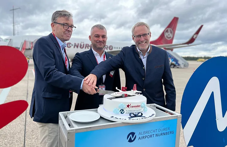 Corendon Airlines, Nürnberg Havalimanı’ndaki 5. yılını coşkuyla kutladı. Bu özel etkinlikte, Corendon Airlines Operasyon Müdürü Atılay Batu, Almanya temsilcisi Christian Hein ve Nürnberg Albrecht Dürer Havalimanı Genel Müdürü Dr. Michael Hupe de hazır bulundu.