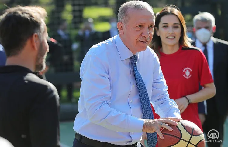 Ziyaretin ardından açılışı yapılacak Ümraniye Millet Bahçesi'ne geçen Cumhurbaşkanı Erdoğan, burada basketbol maçı oynayan gençleri görünce yanlarına gitti. Bir süre gençlerle basketbol oynayan Erdoğan'a, Cumhurbaşkanlığı Sözcüsü İbrahim Kalın da eşlik etti.