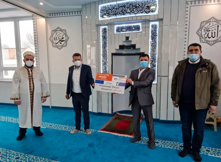 Erlensee DİTİB Fatih Camii’nde yardım çekini teslim alan Belediye Başkanı Erb, camiyi ziyaret ederek cami ve toplumsal çalışmalar hakkında daha fazla bilgi edindiğini söyledi. Erb, “Camide tüm milletlerden insanların bir araya gelmesi memnuniyet verici. Büdingen’e destek olmak için düzenlenen bağış kampanyası buraya olan sosyal bağlılığı gösteriyor.” değerlendirmesinde bulundu ve teşekkür etti.