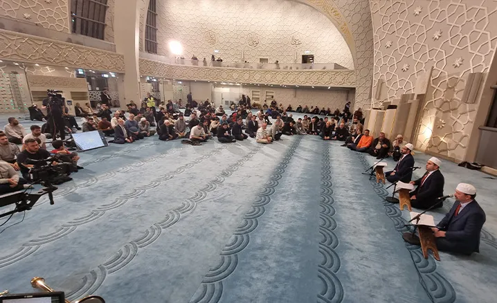 Programda, din görevlileri Gökhan Uygun (Köln DİTİB Merkez Camii), Neşet Kaplan (Duisburg DİTİB Merkez Camii), Hamdullah Durdu (Gelsenkirchen-Horst DİTİB Mevlana Camii) Kur’an-ı Kerim tilavetinin ardından ilahiler okudu.