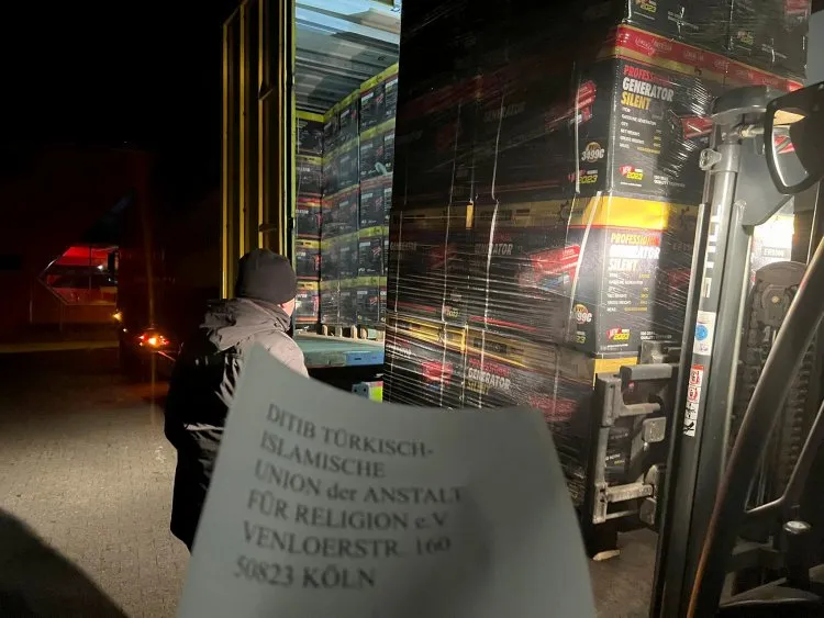 Diyanet İşleri Türk İslam Birliği (DİTİB), iş insanları ve hayırseverlerin katkılarıyla toplanan 2400 jeneratör, asrın felaketinin yaşandığı deprem bölgesine gönderildi.