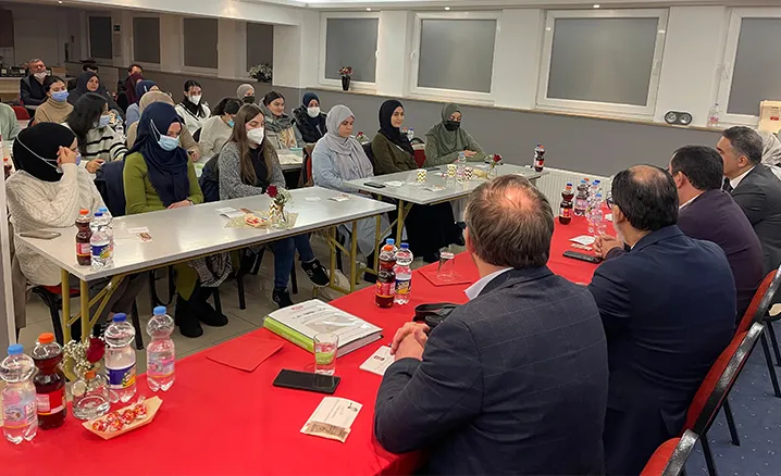 DİTİB Genel Başkan Türkmen, “Münster Erdemli Öğrenci Evleri Buluşması”nda hukuk, öğretmenlik, ilahiyat, mühendislik ve tıp gibi çeşitli fakültelerde eğitim gören, yüksek lisans ve doktora yapan, Erasmus Programı çerçevesinde gelen öğrencilerle tanıştı ve uzun süre sohbet etti.