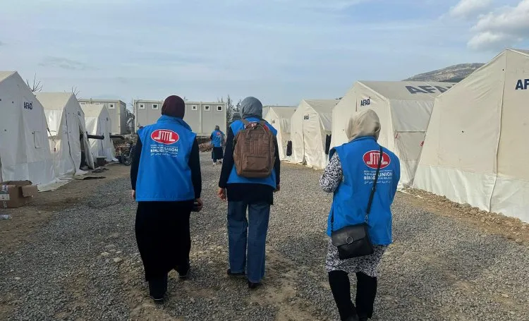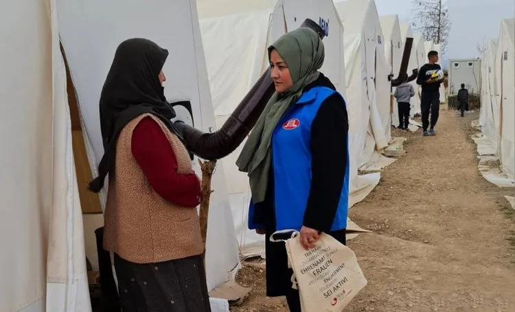 Türkiye Diyanet Vakfı (TDV) koordinesinde Kahramanmaraş’ta bulunan Federal Kadın Birliği başkanı Safiye Kılıç, başkan yardımcısı Şerife Sayım, sekreter Rabia Şahinarslan, Federal Kadın Çalışmaları Koordinatörü Nurten Afat, Kadın Birliği Başkanları Sümeyye Öztürk Mutlu (Essen), Ayla Şener (Hamburg), Sebile Uyanık (Berlin), Lale Türk (Rheinland-Pfalz), Meryem Savun (Düsseldorf), Özlem Ödemiş (Kuzey Bavyera), Ayşegül Yıldırım (Hessen) ve Neslihan Aran (Württemberg) ile NRW eyalet bölge müdiresi Hülya Altun’dan oluşan DİTİB gönüllü kadın heyeti, depremzede ailelerle bir araya geldi.