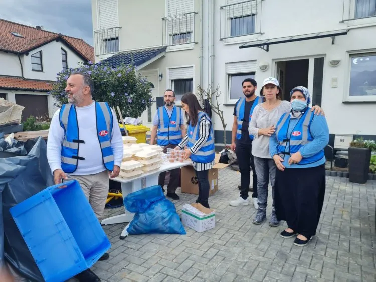 Diyanet İşleri Türk İslam Birliği (DİTİB) Genel Merkez’in desteğiyle Köln eyalet bölge birliği, gençlik ve kadın kollarının organizesinde selden en çok etkilenen Ahrweiler şehrinde 500 kişiye sıcak yemek ve su ulaştırıldı.