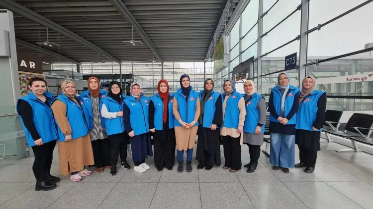 Federal Kadın Birliği başkanı Safiye Kılıç, başkan yardımcısı Şerife Sayım, sekreter Rabia Şahinarslan, Federal Kadın Çalışmaları Koordinatörü Nurten Afat, Essen Kadın Birliği Başkanı Sümeyye Öztürk Mutlu, Hamburg Kadın Birliği Başkanı Ayla Şener, Berlin Kadın Birliği Başkanı Sebile Uyanık, Rheinland-Pfalz Kadın Birliği Başkanı Lale Türk, Düsseldorf Kadın Birliği Başkanı Meryem Savun, Kuzey Bavyera Kadın Birliği Başkanı Özlem Ödemiş, Hessen Kadın Birliği Başkanı Ayşegül Yıldırım ve Württemberg Kadın Birliği Başkanı Neslihan Aran’dan oluşan 12 kişilik gönüllü kadın heyeti, Köln havalimanından deprem bölgesi Kahramanmaraş ve Hatay’a uğurlandı.