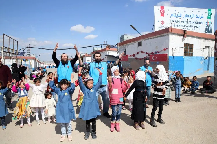 Diriliş Ertuğrul ve Kuruluş Osman dizi oyuncuları Türkiye Diyanet Vakfı gönüllüsü Celal Al, Murat Karak ve Melikşah Özen, İdlib’de savaş mağduru aileleri ve yetim kamplarını ziyaret etti.