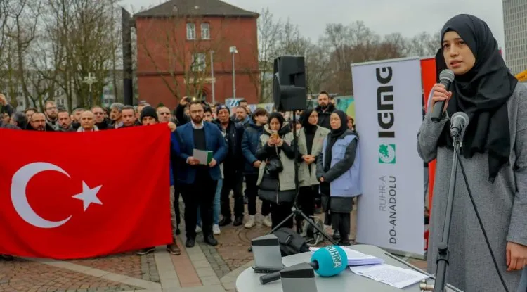 Saygı duruşunun ardından din görevilisi Bünyamin Akdağ Kur’an tilavetinde bulundu. IGMG Dortmund Anadolu Cami başkanı Hamza Kuri günün anlam ve önemine binan yaptığı selamlama konuşmasında duygularını şöyle dile getirdi: “Akıttığımız Göz yaşlarımıza dualarımızı, Bir kardeşimizin enkazdan kurtarılmasına umut dolu gözlerimizi, gönlümüzün en derinliğindeki duyguyu yaptığımız yardımlarımıza kattık.”