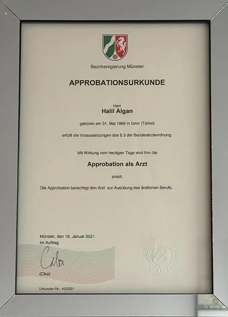 Uzman Dr. Halil Algan, özellikle bel ve boyun fıtıkları, eklem ağrıları, omuz, kalça, diz gibi vücut bölümlerindeki ağrılı hastalıkların tedavisinde yüksek bir deneyime sahip. Türkiye’deki uzmanlık eğitiminden sonra Amerika Birleşik Devletleri’nde, özellikle ağrı tedavisi konusunda derinlemesine bir eğitim aldı. Birmingham, Yale ve Harvard üniversitelerinde yaklaşık 3 yıl boyunca bu alandaki en ileri teknikler konusunda eğitim aldıktan sonra, 28 yıl boyunca ağrı tedavisi üzerine yoğunlaştı. Dr. Algan, son üç yıldır Almanya’da da resmi olarak hizmet veriyor ve artık Duisburg’daki yeni kliniğinde bu birikimiyle hastalarına sağlıklı bir yaşam sunmayı amaçlıyor.