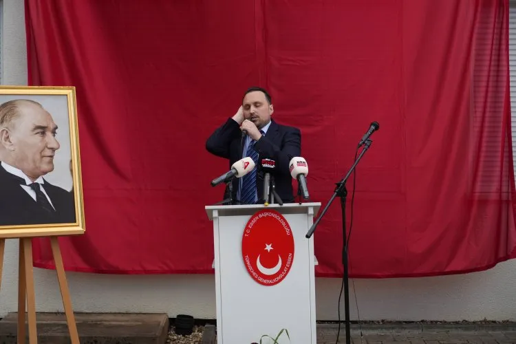 Konsolosluk binasında yapılan törene Essen Belediye Başkanı Vekili Udo Sobieski, Herne Belediye Başkan Yardımcısı Kai Gera, başkonsolosluk mensupları ve STK temsilcileri ile çok sayıda vatandaş katıldı.